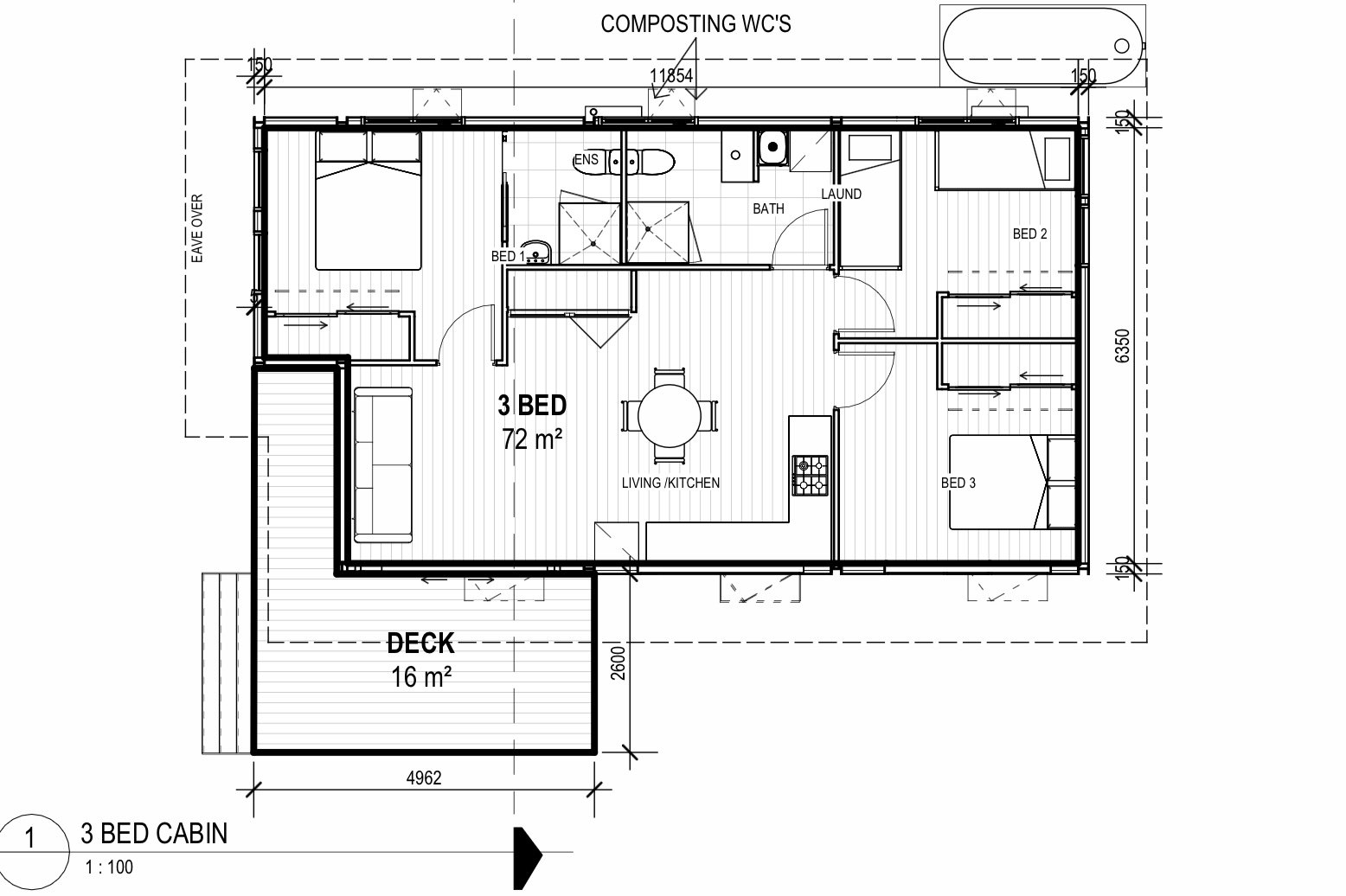 This 3 bedroom 60m² granny flat features vinyl cladding, ensuite bathroom and air conditioning.